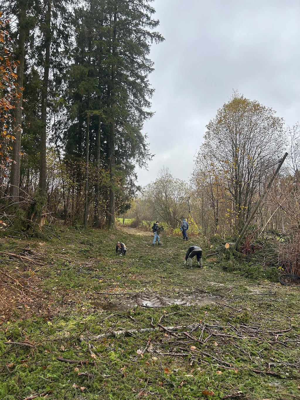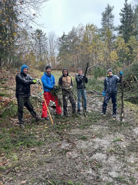 Gjengen som trosset vær og vind på lørdag la ned en formidabel innsats! Hele svingen på hull 7 og fairway hull 8 ble ryddet for kvist. De fikk også ryddet en del rundt kurv 16.